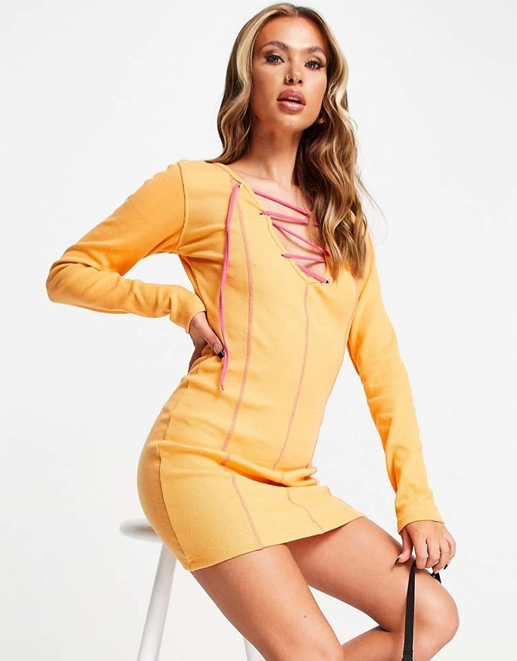 - Plunge neck with lace-up detail
