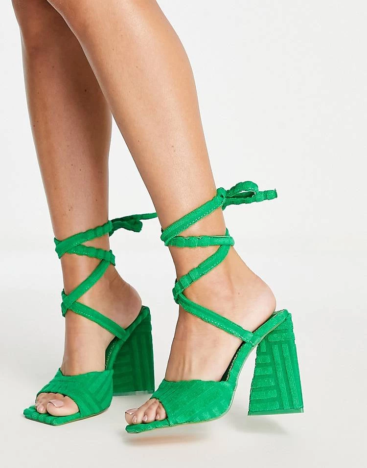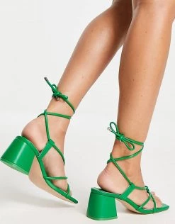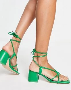 Coupon โค๏ธ Public Desire Wide Fit Aloha Knot Strap Mid Heel ๐ฉด Sandals In Green For Women ๐