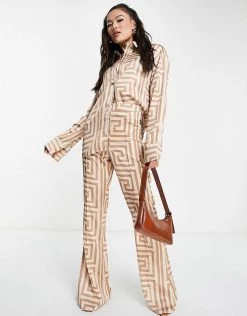 Buy โญ Public Desire Curve X Kenza Satin Wide Leg Trouser Co Ord In Multi For Women ๐