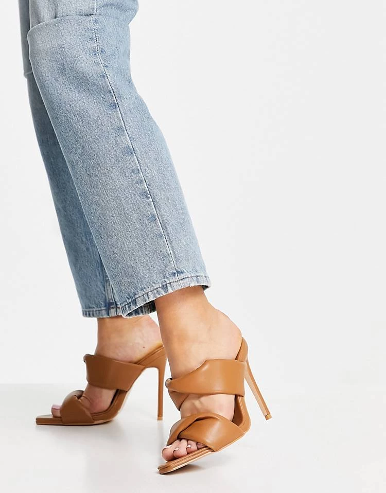 Outlet ⌛ Public Desire Wide Fit Heart Stops Platform Heel 🩴 Sandals In Beige Pu For Women ✔️