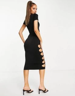 Best deal โ Public Desire Double Layer Slinky Cut Out Maxi ๐ Dress In Black For Women ๐