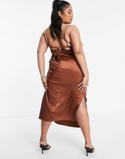 Best deal โ๏ธ Public Desire Halterneck Midi ๐ Dress With Cut Out In Brown For Women Maple โ