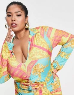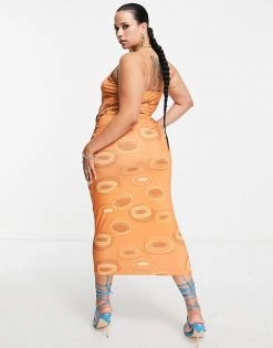 Best Pirce ✔️ Public Desire Curve 70’s Inspired Bodycon 👗 Dress In Brown Print For Women Multi 🤩