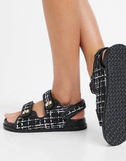 Best reviews of 👍 Public Desire Wide Fit Carmen Chunky Grandad 🩴 Sandals In Black Boucle For Women 👍