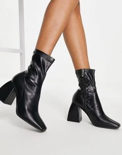 Flash Sale ❤️ Public Desire Supreme Square Toe Sock 🥾 Boots In Black For Women Black Stretch Pu 🛒