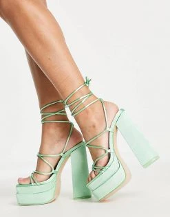 Cheap ๐ Public Desire Glow Girl Platform Heel ๐ฉด Sandals In Mint Green For Women Blue โค๏ธ