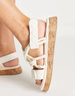 Hot Sale ๐ Public Desire Wide Fit Miami Quilted Rope Flatform ๐ฉด Sandals In Cream For Women โจ