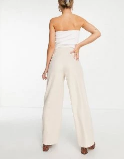 Best Sale โ๏ธ Public Desire Curve Plisse Wide Leg Trouser Co Ord In Ecru For Women ๐ฏ