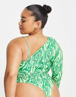 Promo โ๏ธ Public Desire Curve Double Layered High Rise Bodysuit In Green Swirl For Women ๐