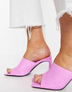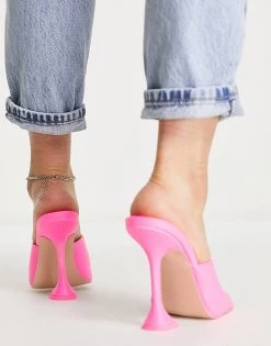 Best reviews of ๐ Public Desire Wide Fit Flame Heeled Mules In Bright Pink For Women Pink Pu โจ