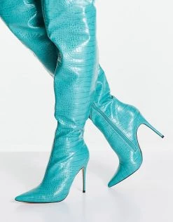 Best Sale ๐ Public Desire Wide Fit Loyal Block Heel ๐ฅพ Boots In Black Knit For Women ๐งจ