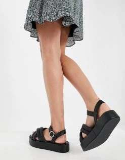 Cheapest ❤️ Public Desire Wide Fit Ellis Chunky 🩴 Sandals With Chain Trim In Black For Women 🎉