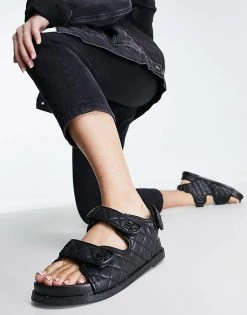 Hot Sale ๐คฉ Public Desire Carmen Quilted Flat ๐ฉด Sandals In Black Drench Pu For Women ๐งจ