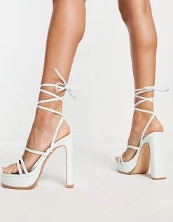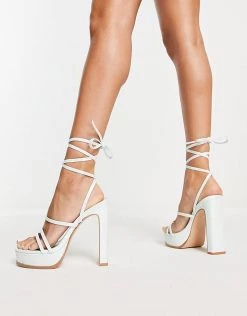 Budget ๐ Public Desire Wide Fit Gimme Tie Up Platform Heel ๐ฉด Sandals In Sage For Women โญ