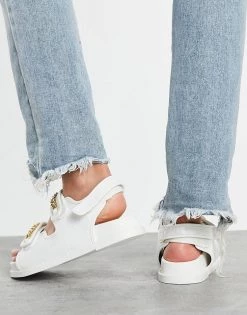 Best Pirce 💯 Public Desire Wide Fit Ellis Chunky 🩴 Sandals With Chain Trim In White Croc For Women 🎉