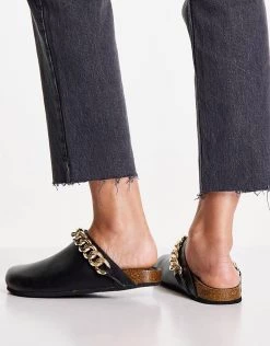 Best Pirce โญ Public Desire Isabel Mule Clogs With Chain Trim In Black For Women Black Pu โค๏ธ
