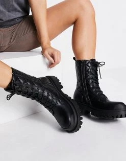 Best Pirce โจ Public Desire Outstanding Chunky Flat Ankle ๐ฅพ Boots In Black For Women ๐