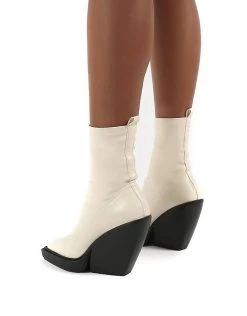 Best Pirce ๐ Public Desire Rae Pull On ๐ฅพ Boots With Metal Detail In Bone For Women โ