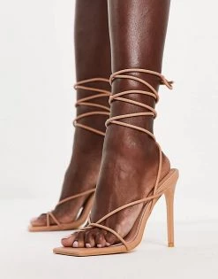 Flash Sale ๐ Public Desire Zing Tie Leg Heel ๐ฉด Sandals In Beige For Women Beige Pu ๐งจ