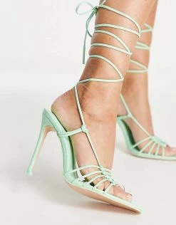Outlet โ๏ธ Public Desire Thalia Barely There Knot Mid Heel ๐ฉด Sandals In Black For Women โค๏ธ
