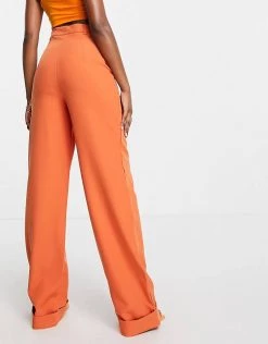 Promo 🛒 Public Desire Tailored Trousers With Turn Up Detail Co Ord In Rust For Women Brown 🔥