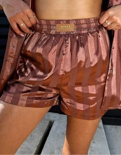 Wholesale ๐ฅฐ Public Desire X Kenza Beach Short Co-ord Mocha Satin Stripe Jacquard For Women โญ